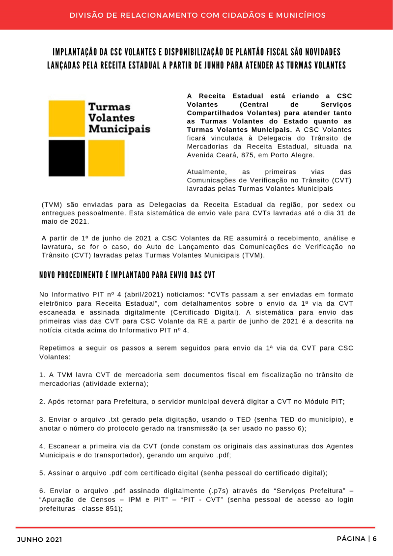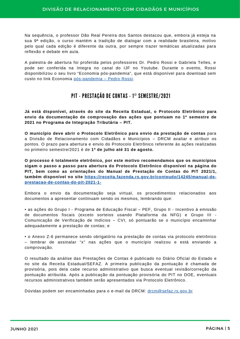 nformativo PIT (Programa de Integração Tributária) nº 5 - Junho/2021