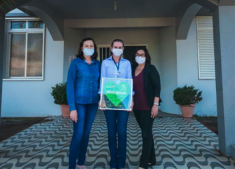 Prefeita Municipal Teresinha M. Zavaski, recebeu na tarde de ontem das mãos da Gerente Administrativa Financeira do Sicredi de Alegria/RS Karine Golin, o quadro simbolizando o valor de R$ 20.000,00, sendo R$ 10.000,00 do Fundo Social e R$ 10.000,00 de complemento, destinado a área da saúde pelo Sicredi às Entidades Públicas e Filantrópicas da região de sua abrangência.